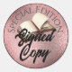 Adesivo Redondo Rosa de cópia assinada da edição especial Dourada