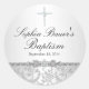 Adesivo Redondo Rosa de prata e vinheta de batismo cruzado