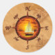 Rosa de Compass náutico de Vintage com pintura digital de um veleiro e pôr do sol no centro e no mapa náutico de estilo vintage do fundo de Florida Keys.