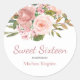 Adesivo Redondo Rosa Dourado e Flores de Blush Sweet 16 Favor