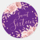 Adesivo Redondo Rosa Dourado Púrpura Doce 16 Aniversário Glitter
