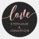 Um favor de casamento ou adesivo de envelope falso rosa dourado rosa e preto temperamental e elegante com texto personalizado com seus nomes, data ou outro texto personalizado e "amor" em um design de caligrafia.