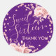 Adesivo Redondo Rosa Dourado Roxo Doce 16 Obrigado Brilhante