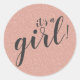 Adesivo Redondo Rosa Dourado Vinheta de Chá de fraldas de Garota G