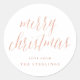 Simples rosa dourado "natal alegre", autocolantes de Natal, personalizados com seu nome de família. A caligrafia do script está em um efeito rosa dourado (efeito impresso, não brilho real).