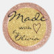 Adesivo Redondo Rosa e brilho Dourado feito com símbolo cardíaco d