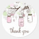Adesivo Redondo Rosa e Mint Green Mason Jars Obrigado Sticker