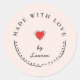 Personalizado feito com amor em um roteiro moderno em fundo rosa. Adiciona um bonito toque final para todos os presentes feitos à mão.