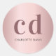 Adesivo Redondo Rosa empoeirado com de monograma rosado