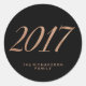 Estes adesivos elegantes dizem 2017 na falsa tipografia de ouro rosa a preto, e também têm um lugar para personalizar. O toque perfeito para a véspera de Ano Novo!