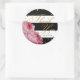 Adesivo Redondo Rosa Glitter Confetti Stripe Moderna Casamento Flo