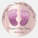 Adesivo Redondo Rosa Glitter Feet Chá de fraldas Favor Obrigado