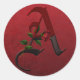 Fonte antiga medieval inglesa A inicial, texturizada em duas camadas. A parte superior do metal vermelho profundo, a parte inferior do metal liso preto com reflexo vermelho. Como decoração uma rosa vermelha de sangue, quase murchada. Um monograma que combina com pessoas de sabor escuro e gótico, além de amantes de rosa e flores.