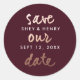 Um adesivo de data moderno, que apresenta um script de data gravado em rosa gold, com o nome e a data dos casais em branco, em um plano de fundo preto. Perfeito para uso como um invólucro ou para favores ou sacos de presentes.