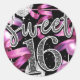 Adesivo Redondo Rosa Preto Prata Brilho Falso Olhar Doce 16