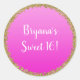 Adesivo Redondo Rosa Quente Dourado com Brilho Glam Glitter Festa