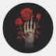 Adesivo Redondo Rosa Skeleton Skull Hand Red Flower Rosa 1