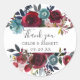 Esse obrigado floral vermelho e burro que você favorece... é a maneira perfeita de obrigado seus convidados para o seu casamento. Por cima e por baixo do texto, são colocadas duas pequenas disposições florais. Rosa vermelha de pesada profunda ancora o design. As rosas cor-de-rosa macio mantêm-no leve, enquanto as flores azuis mais brilhantes adicionam um bonito pop de cor. Todo o texto pode ser personalizado. Use esses adesivos ou qualquer ocasião, de um casamento à formatura.