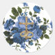 Adesivo Redondo Rosas Azuis Religiosos Crucifixo Dourado Floral