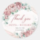 Rosas boêmias folhagem verde dourado obrigado casamento adesivo redondo monograma clássico
