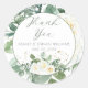 Adesivo Redondo Rosas brancas| Eucalyptus Floral Obrigado