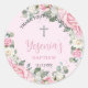 Adesivo Redondo Rosas Cor-de-Rosa Florais Brancas Batismo Batizado