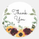 Adesivo Redondo Rosas de girassol Greenery Obrigado
