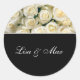 Um autocolante de cerimônia de núpcias mostrado a preto com uma impressão de fotos de rosas brancas bonito. Personalize este item e altere os nomes para o seu, adicione a data ou o comprar como está.