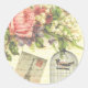 Uma bela imagem de vintage com um tema vitoriano, com um pássaro em gaiola, um cartão postal de Paris, e bonito rosas rosa.