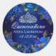 Adesivo Redondo Rosas Florais Azuis Diamond Tiara Quinceanera
