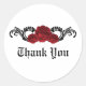 Rosas Gothic Swirl Darkly elegantes Obrigado Stickers com uma espiral florescente e um trio de rosas vermelhas profundas. Esses adesivos legal e únicos são perfeitos para o casal planejando um casamento não tradicional de góticos. Fácil de personalizar, basta adicionar o texto personalizado de sua escolha. Clique no botão "Personalizar a TI" para encontrar opções adicionais de personalização.