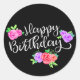 Adesivo Redondo Rosas Marginais e Listras Modernas Feliz Aniversár