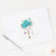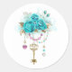 Chave de ouro antiga com rosas de turquesa de tendência, decoradas com folhas de ouro branco e miçangas cor-de-rosa e azuis. Cor agradável. Rosas de turquesa. Ouro branco. Tifania azul.