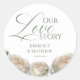 Adesivo de boas-vindas de casamento moderno e elegante, com salvia floral em aquarela elegante e rosas brancas empoeiradas do jardim, caligrafia elegante e moderna desenhada à mão. Adesivo sofisticado e elegante, suave e moderno.