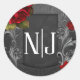 Adesivo Redondo Rosas Vermelhas Favor de Casamento Gótico Ornament