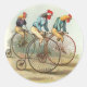 Uma ilustração muito incomum da safra, com três galões vestidos a andar de bicicleta de pedrinha. Um adesivo adorável ou selo de envelope.