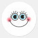 Adesivo Redondo Rosto de Cartoon de Menina Tímida Bonita