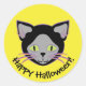 Adesivo Redondo Rosto de Gato Negro Halloween