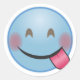 Adesivo Redondo Rosto Emoji Azul com língua enfiada Engraçado
