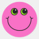 Estes adesivos bonitos apresentam um rosto rosa feliz com um sorriso grande e olhos verdes.