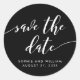 Adesivo elegante de Salve a Data com as palavras "Salve a Data" em uma escrita cursiva relaxada em branco contra uma cor de fundo editável (clique em personalizar para acessar).