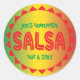 Etiqueta de frasco para latas vermelho, verde e amarelo, brilhante e colorido Salsa caseiro, para presente ou etiqueta de comida pessoal. Edite o texto das linhas verdes para seu próprio nome, variedade ou outras informações. Fundo combinado vermelho, verde e amarelo com fontes e bordas divertidas.