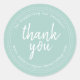 Obrigado elegante, moderno e simples para o cliente que você rotula com o obrigado de texto que você está dando suporte a nosso negócio em caligrafia branca com na moda e tipografia moderna em um fundo azul. Você pode usar os adesivos para suas encomendas de produtos de pequenas empresas, pacotes, sacos de presentes ou como um selo de envelope. Basta adicionar seu obrigado ao texto e adicionar seu nome comercial ou site de negócios. Desenvolvido exclusivamente para você pelo Happy Dolphin Studio. Se precisar de ajuda ou produtos correspondentes, entre em contato conosco em happydolphinstudio@outlook.com.