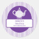 Roxos roxos em torno do nome do seu café ou restaurante em design adorável de um bule de chá branco. Insira seu site. Arte do artista de Woodcut WindyDesign.