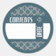 Precisava de um rótulo bonito, mas prático, para colocar tampas de latas. Os círculos concêntricos azuis azuis azuis deixam um espaço em branco para a descrição de "Conteúdo" e "Data".