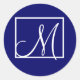 Adesivo Redondo Rótulo de Casamento Inicial do Monograma Azul-Mari