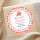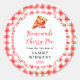 Este adesivo divertido e caprichoso apresenta uma torta de cereja em uma toalhinha de renda branca e fundo de xadrez vermelho. É perfeito para rotular seus produtos caseiros. O texto combina fontes manuscritas e serifadas para um visual elegante e moderno.