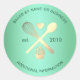 Um design elegante e sofisticado em verde menta e dourado no tema de chef de confeitaria para cupcakes. Este rótulo adesivo é ótimo para etiquetar pacotes de negócios de produtos assados, lembranças de casamento ou festa de aniversário, presentes de sobremesas caseiras e muito mais. Por favor, note que os detalhes em folha são simulados.