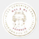 Design exclusivo de rótulo de endereço circular com um carro antigo dourado falso, texto "casados" nele, texto circular. Use a ferramenta Personalizar para adicionar suas informações, iniciais e talvez seja necessário ajustar para caber, alterar as cores da fonte. Adicione um espaço entre as letras e um espaço duplo entre as palavras para este "visual".