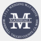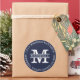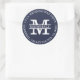 Texto na cor branca em um adesivo de fundo azul-marinho. Personalize facilmente com seu Monograma. Dá um visual elegante e sofisticado à sua papelaria de casamento. Ideal para um casamento com tema na cor roxa.
